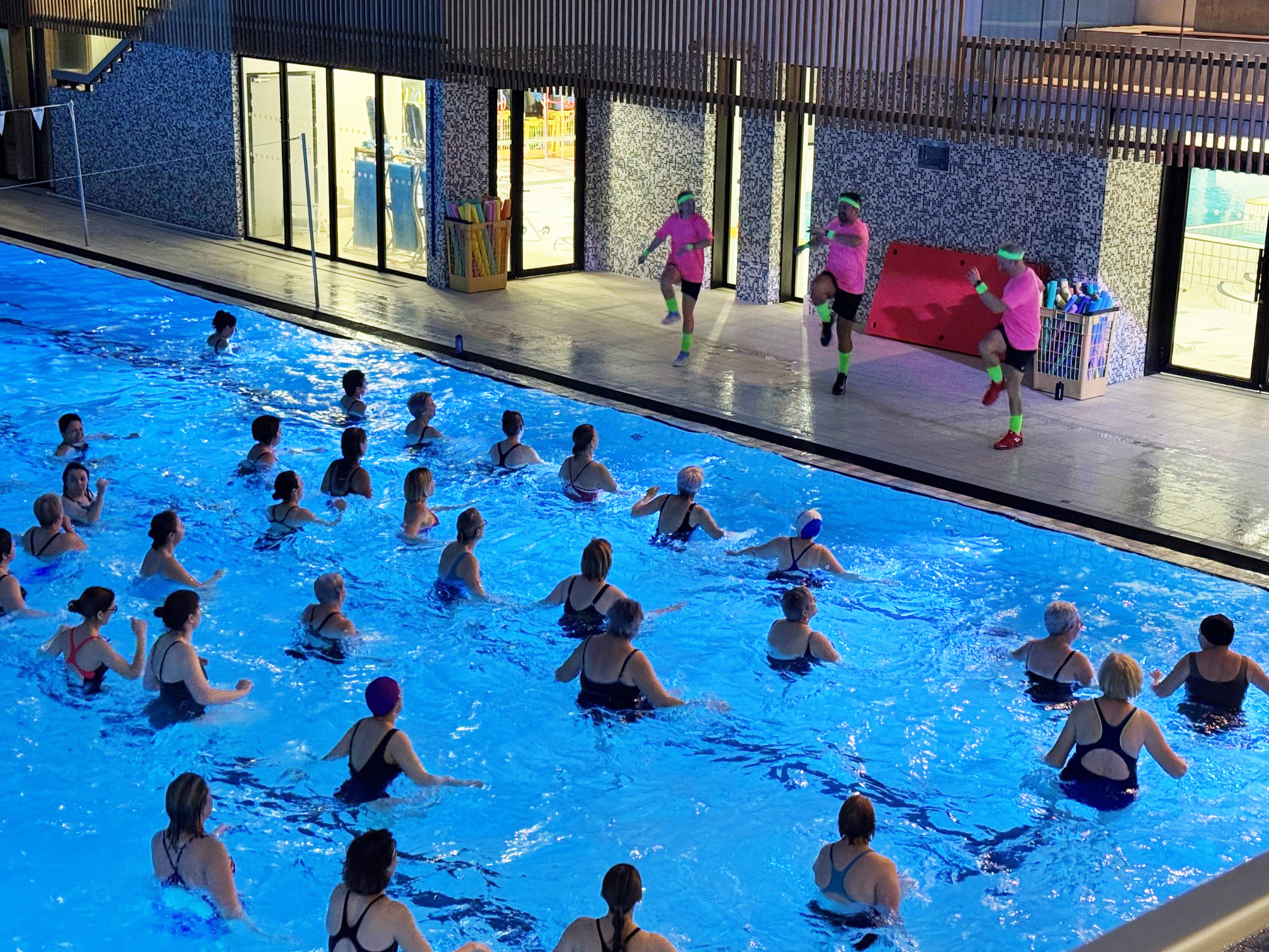Dans le grand bassin, des dizaines de participants se retrouvent pour bouger en rythme au son de la musique. Accessible à tous, cette séance collective allie sport, plaisir et bonne humeur, pour se dépenser efficacement tout en profitant des bienfaits de l’eau.